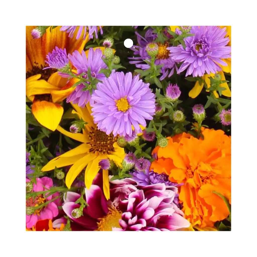 Diese Geschenkkarte – Blumenmischung zeigt eine lebendige Illustration mit verschiedenen Blumen, die einen frischen und fröhlichen Look schaffen. Die Karte besteht aus 300 Gramm FSC-Papier und fühlt sich stabil und professionell an, geeignet für Einzelhandels- und Geschenkverpackungen.