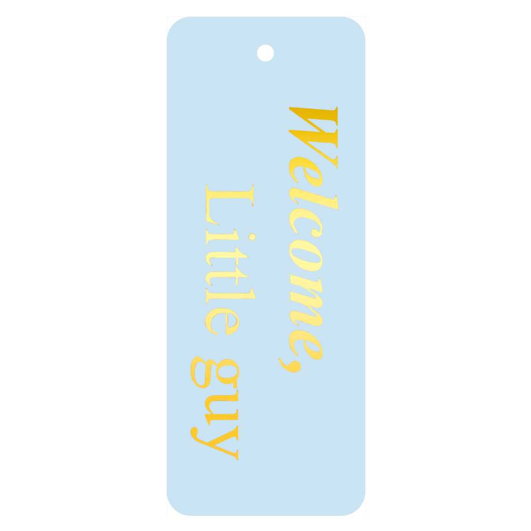 Die „Willkommen, Kleiner“- Karte aus der Loré-Reihe strahlt Sanftheit und Raffinesse aus. Der frische hellblaue Farbton bildet einen harmonischen Kontrast zum 3D-glänzenden Goldfoliendruck, der dem Design ein luxuriöses Aussehen und ein dezentes Relief verleiht.