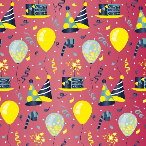 Designs: Sortiert – Luftballons, Kerzen, Partyhüte, Fahnenschnüre