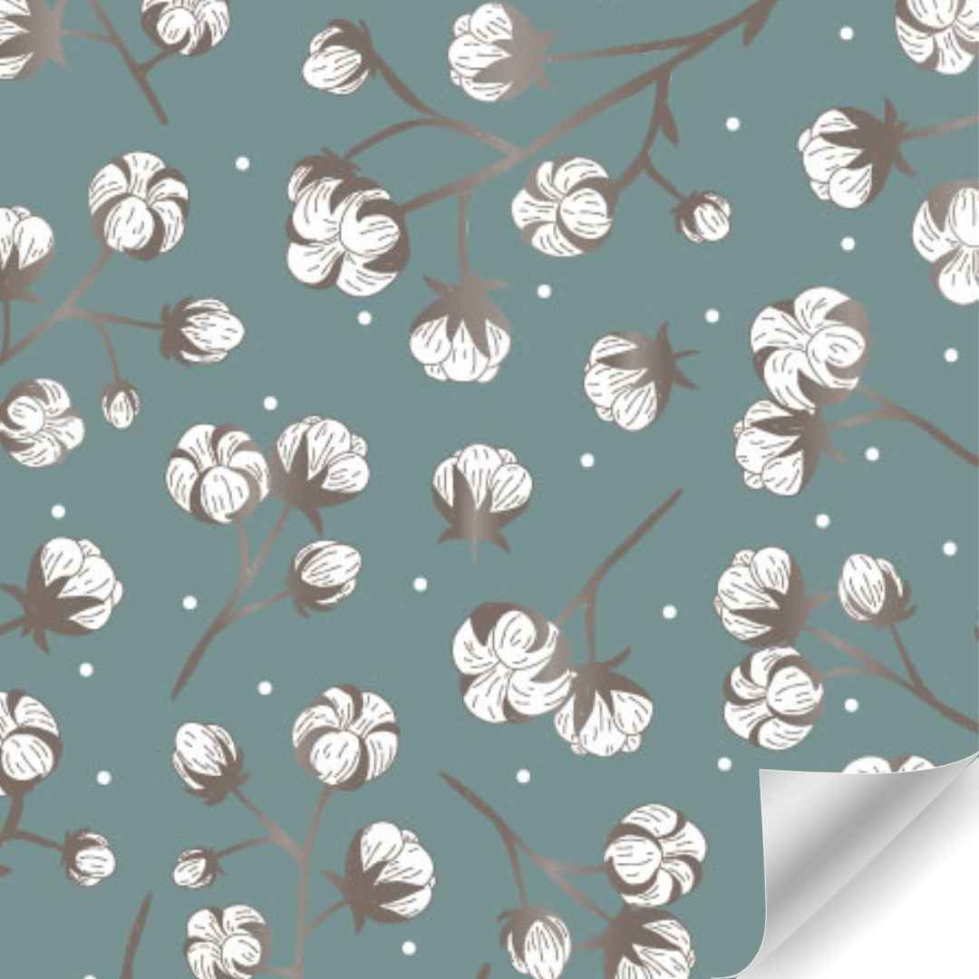 Bringen Sie mit diesem wunderschönen Baumwollpapier-Papier einen Hauch natürlicher Eleganz in Ihr Geschenkpapier. Der sanfte blau-grüne Hintergrund kombiniert mit spielerisch gezeichneten Baumwollblumen sorgt für ein beruhigendes und stilvolles Aussehen. Perfekt für Momente, in denen Sie eine warme, organische Atmosphäre schaffen möchten – von Geburtstagen und Feiertagen bis hin zu Hochzeiten und geschäftlichen Aktivitäten.