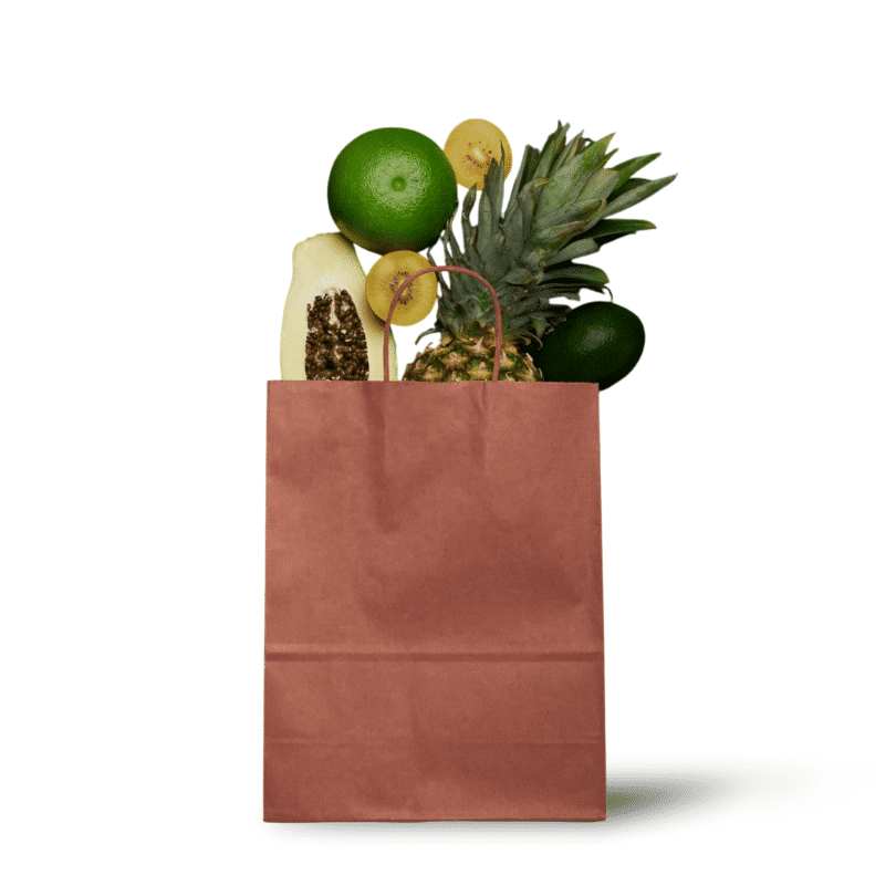 Die braunen Papier-Tragetaschen bestehen aus Natron-Kraftpapier.