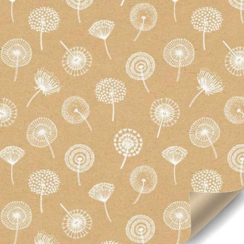 Design: Weiße Pflanzen/Samenflaumdruck auf braunem Kraft-Hintergrund