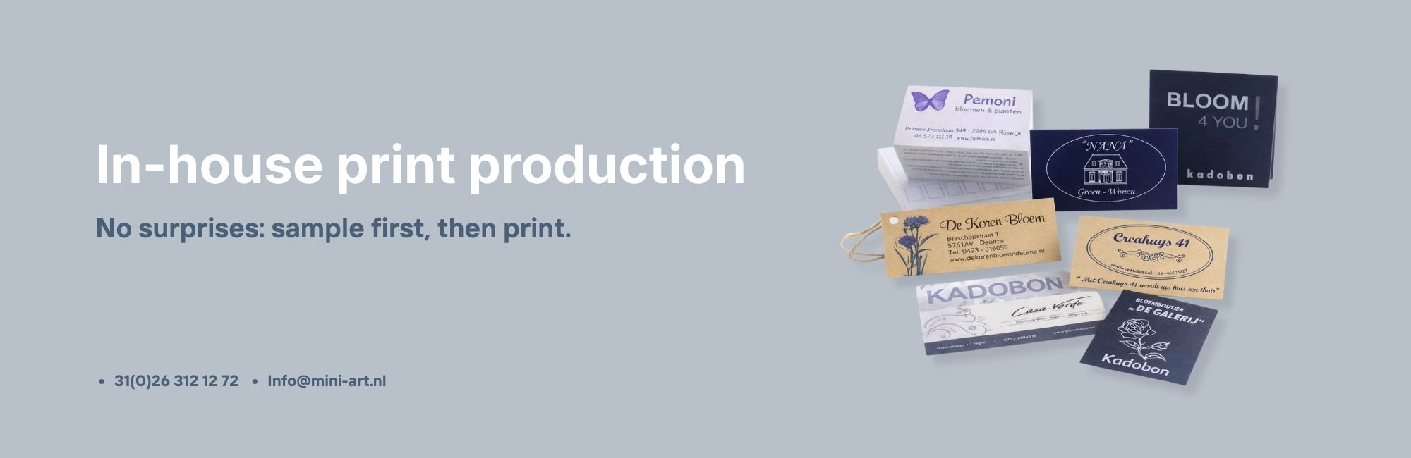 In short, Mini-Art is total supplier when it comes to label printing, name cards and name ribbons and printing. And if you have a special question? Feel free to give us a call.