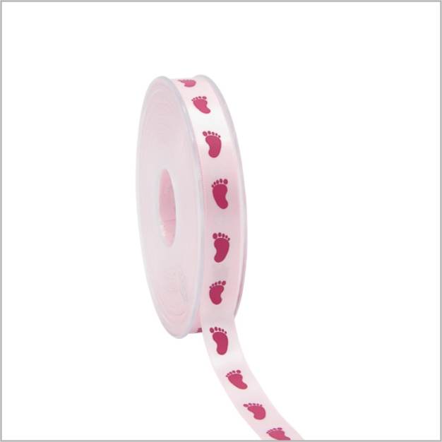 Baby ribbon – pink feet – 12 mm x 25 meters