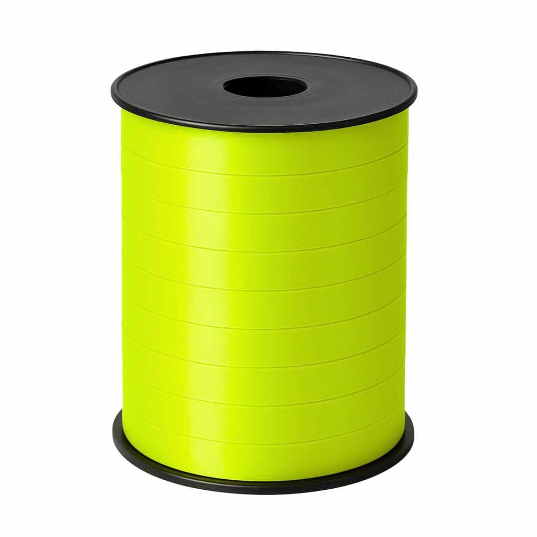 Fresh and eye-catching curling ribbon in lime green, perfect for gift wrapping, party decorations and creative projects. This budget series ribbon is 10 mm wide and 250 meters long per roll. Easy to curl and split for a playful and festive effect.