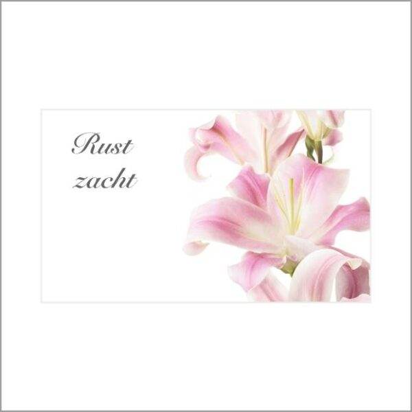 The choice of paper in combination with the rib ribbon makes this card a beautiful addition to any mourning arrangement.