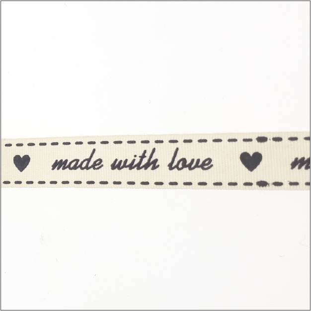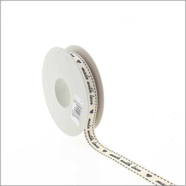“Made with love”. with this ribbon you will show how your product is made. This woven ribbon has a natural look and feel.