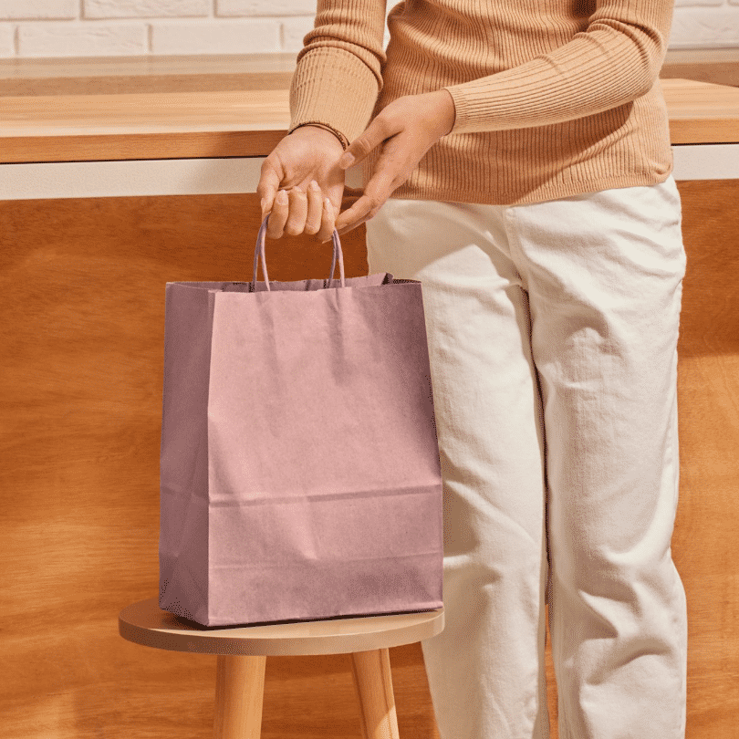 The bottom fold, side fold and block bottom give this paper bag extra carrying capacity and ensure that it stays upright.