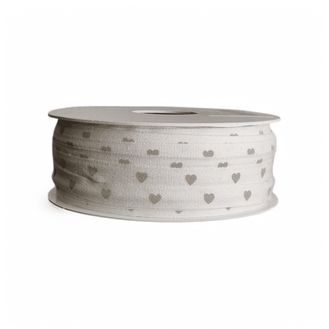Make your gifts and decorations extra stylish with this white ribbon with beige hearts. Order now and add a soft, romantic and chic touch to any moment! 🎀🤍