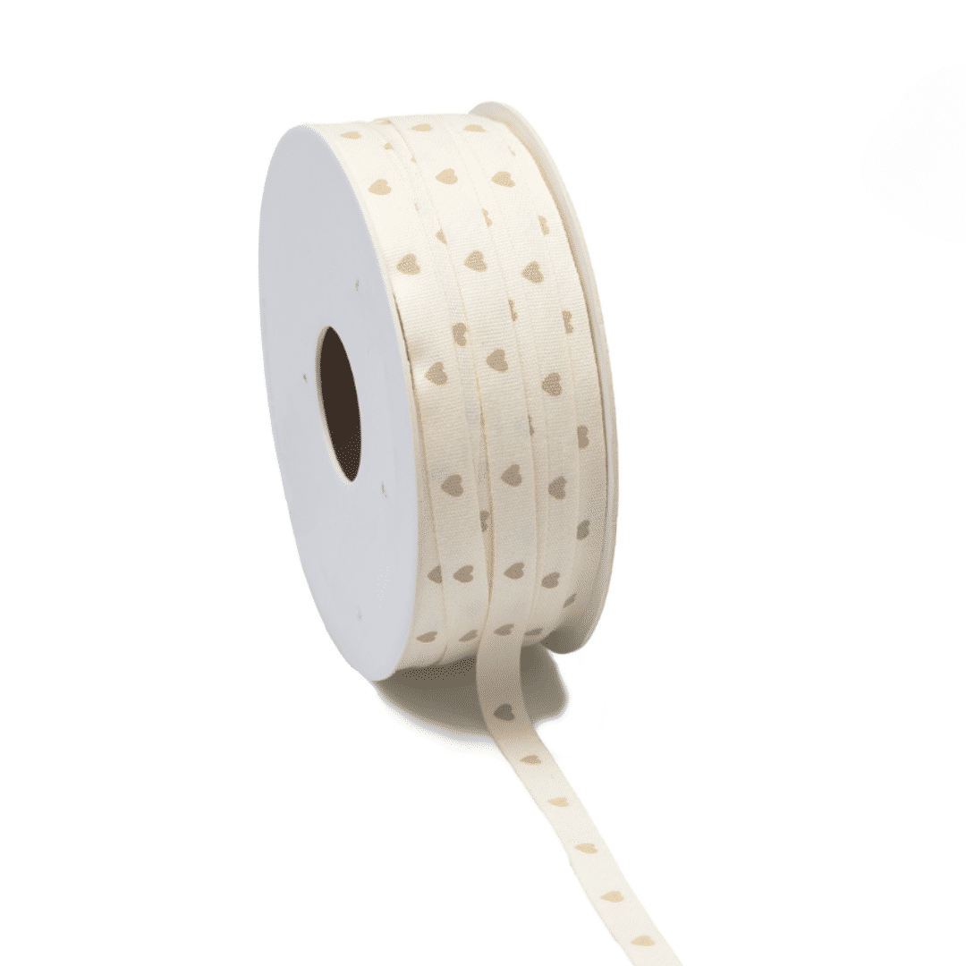 Ribbon – Beige Hearts – White – 25m x 8mm