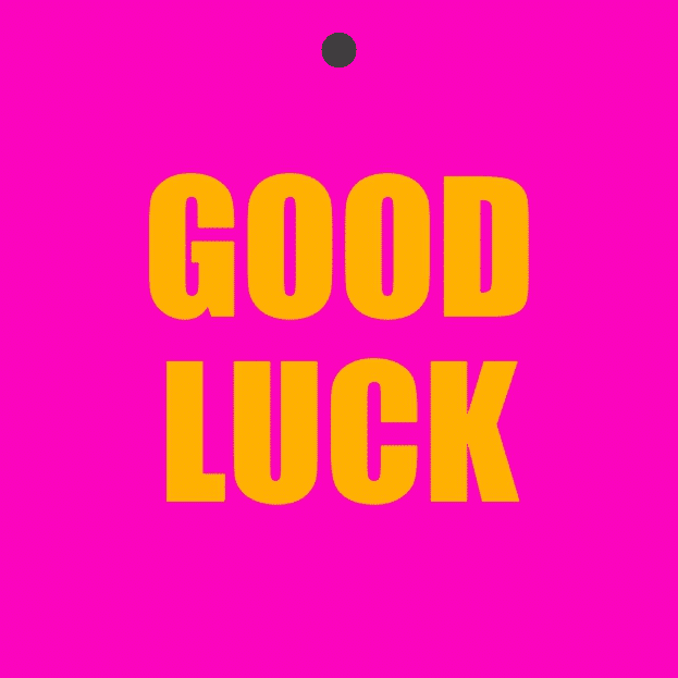 - Tekst: “Good Luck” – Motiverend en positief.