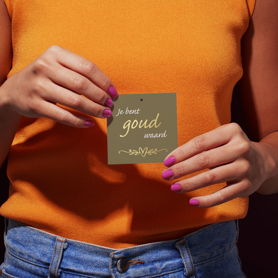 - Tekst: “Je bent goud waard” – Een warme en persoonlijke boodschap van waardering.