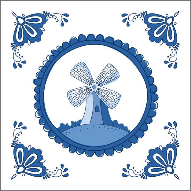 Delftsblauw wenskaart – molentje – 6 stuks