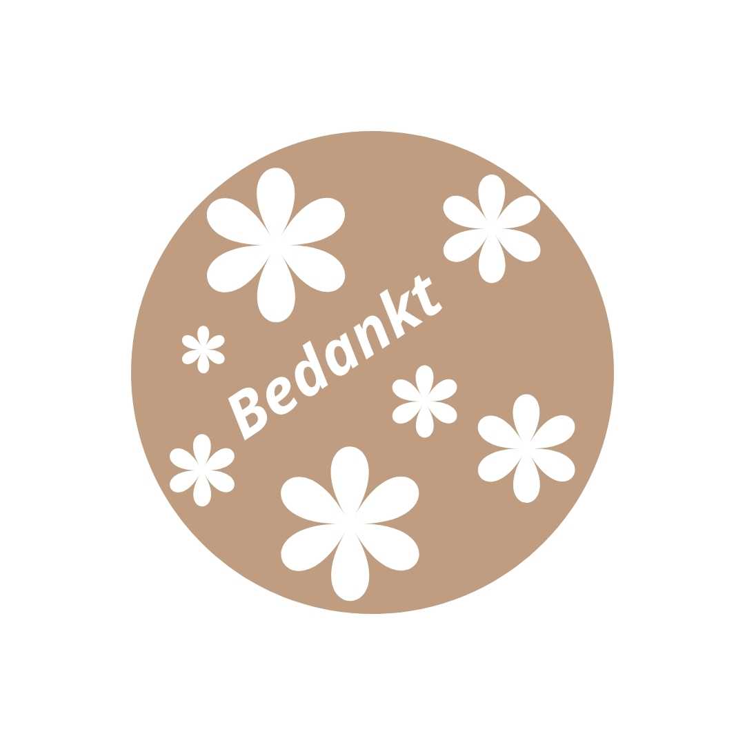 Deze ronde etiketten met een freeline kraft ondergrond, speels bloemendessin en de witte tekst “Bedankt” geven verpakkingen een warme, vriendelijke en oprechte uitstraling. De natuurlijke kraftkleur in combinatie met de zachte bloemen en het frisse wit zorgt voor een tijdloos en liefdevol design dat perfect past bij bedankjes, attenties en handgemaakte producten.