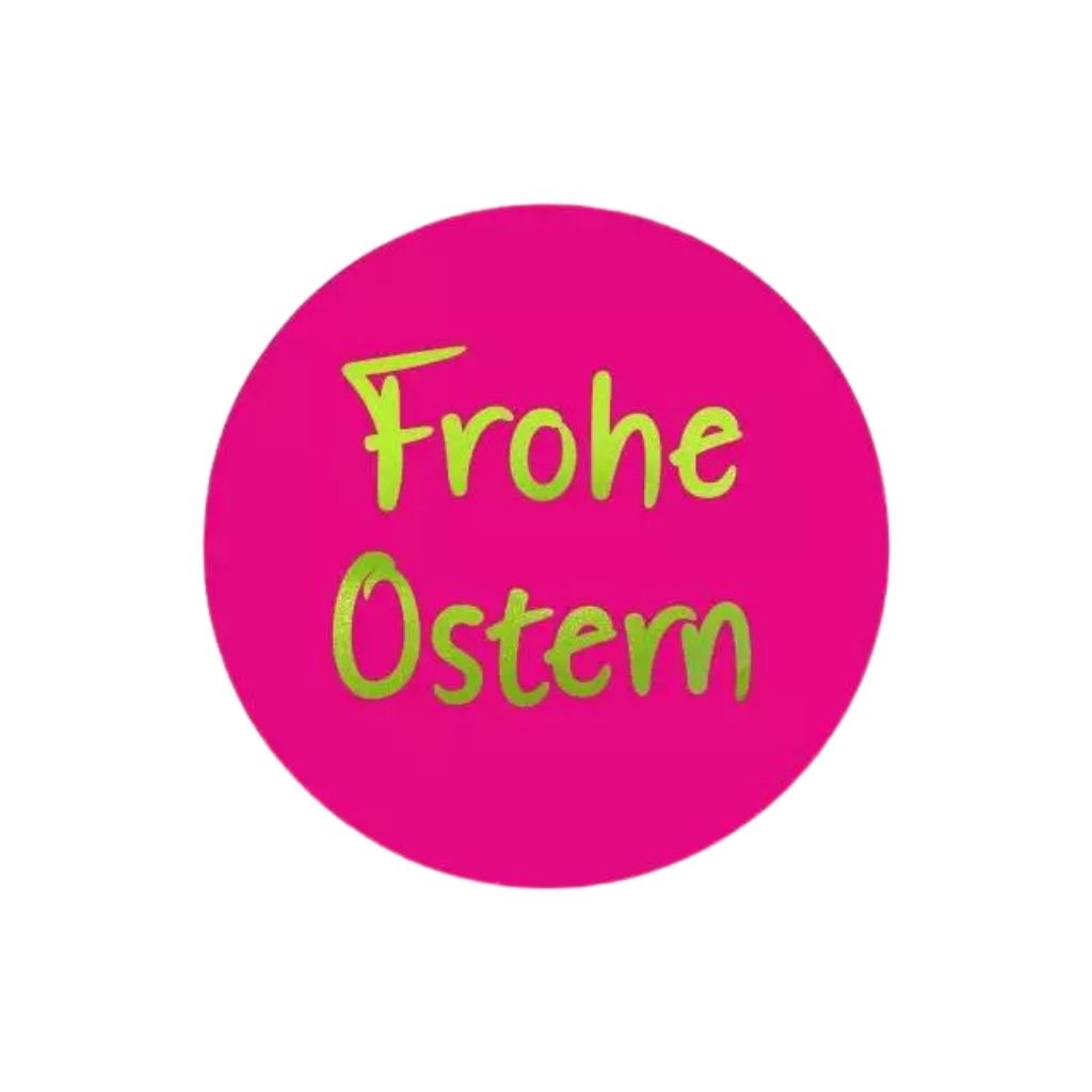 Deze etiketten – “Frohe Ostern” zijn opvallende, zelfklevende stickers die speciaal zijn ontworpen voor paasverpakkingen en seizoenspresentaties. De combinatie van een pink achtergrond met metallic groene bedrukking zorgt voor een frisse en eigentijdse uitstraling met een luxe accent.