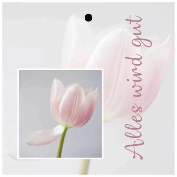 Design: Zarte rosa Tulpe mit beruhigendem, aufbauenden Schriftzug.
