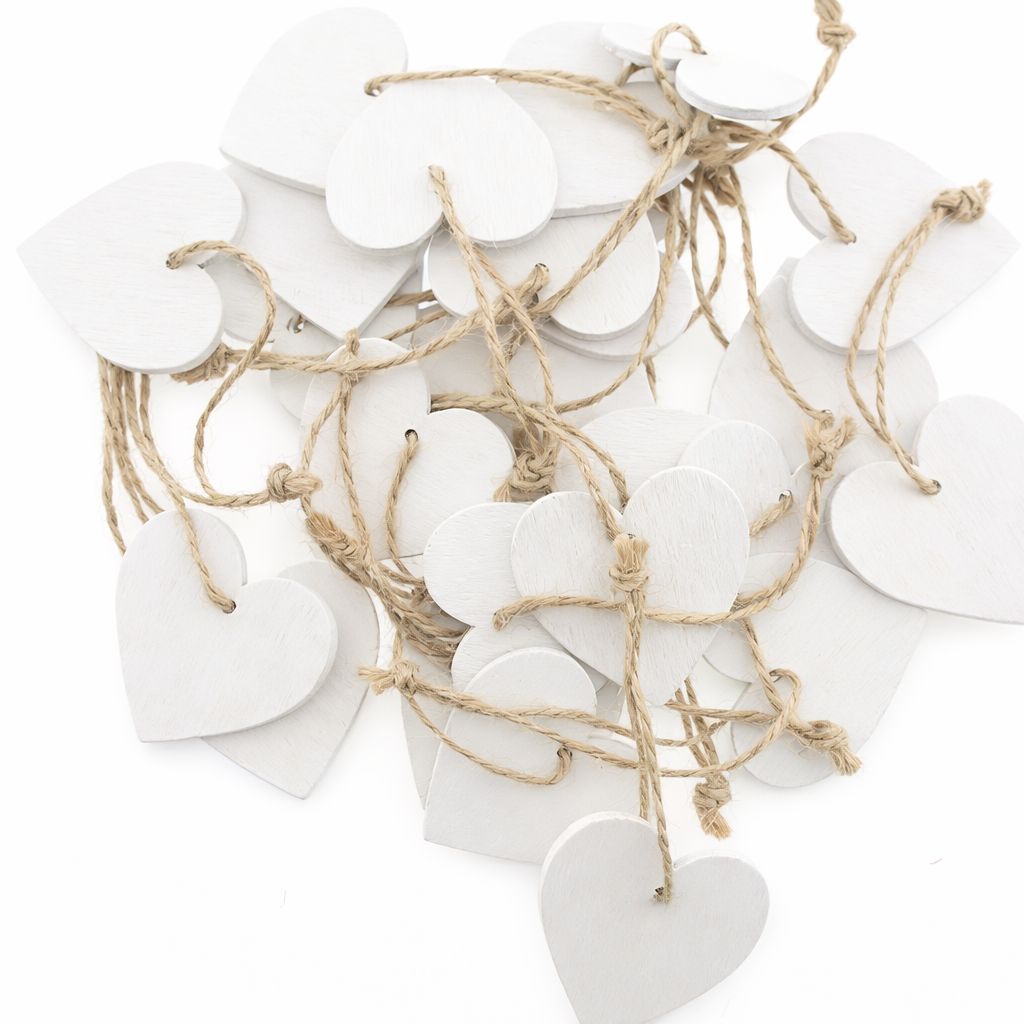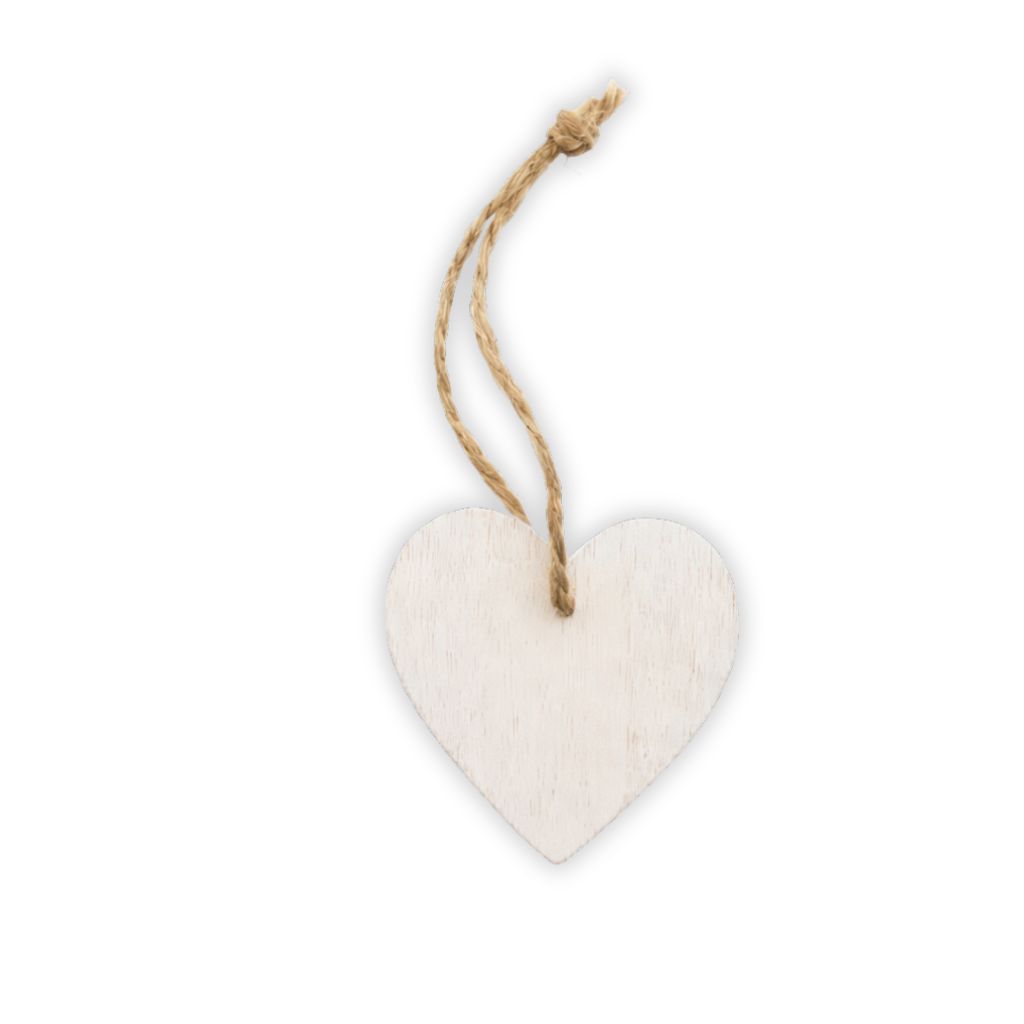 Houten gelukshart - houtkleur / wit - 24 stuks