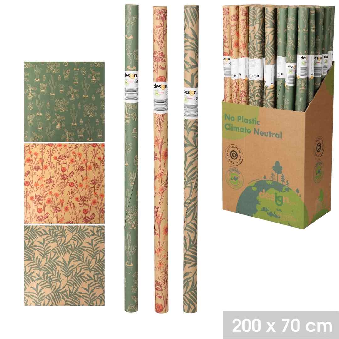 Het papier is stevig en soepel, waardoor het gemakkelijk strak te vouwen is en netjes om cadeaus blijft zitten. Dankzij het royale formaat per rol is het geschikt voor zowel kleine als grotere geschenken. De rollen worden geleverd in een overzichtelijke displayverpakking en zijn geproduceerd met aandacht voor het milieu.