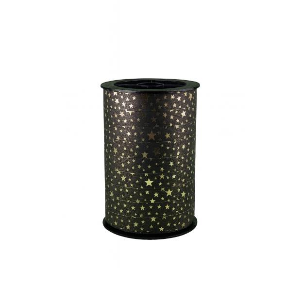 Maak je cadeaus en feestdecoraties extra stijlvol met dit luxe krullint van 10 mm breed en 100 meter lang. Het lint heeft een elegante zwarte kleur en is versierd met glanzende gouden sterren in verschillende groottes. De chique uitstraling maakt dit lint perfect voor de feestdagen of voor een glamoureus tintje bij elke gelegenheid.
