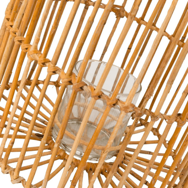 Breng een warme en sfeervolle sfeer in huis of tuin met deze imposante Lantaarn (L) – Biza. Met zijn natuurlijke bamboekleur en handgemaakte rietlook design is deze lantaarn een echte blikvanger. De open geweven structuur zorgt voor een betoverend lichtspel wanneer je er een kaars of LED-lamp in plaatst.