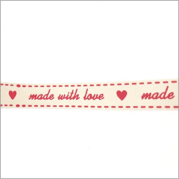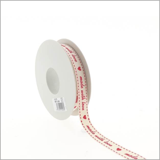 “made with love”. met dit lint laat je zin hoe je product gemaakt is. Dit geweven lint heeft een natuurlijke uitstraling.