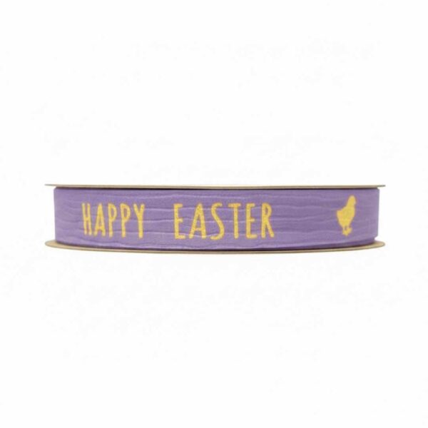 De matte paperlook afwerking zorgt voor een stijlvolle en professionele presentatie van seizoensproducten rond Pasen. De paarse basis is voorzien van de opdruk “Frohe Ostern” in goudkleur, aangevuld met eenvoudige silhouetten van een kuiken en een haas. De combinatie van paars en goud geeft het lint een elegante uitstraling en maakt het bijzonder geschikt voor hoogwaardige paasverpakkingen. Het lint is ideaal voor het afwerken van onder andere chocoladeartikelen, geschenkverpakkingen, cadeauzakjes en voorjaarsassortimenten binnen een B2B-omgeving.