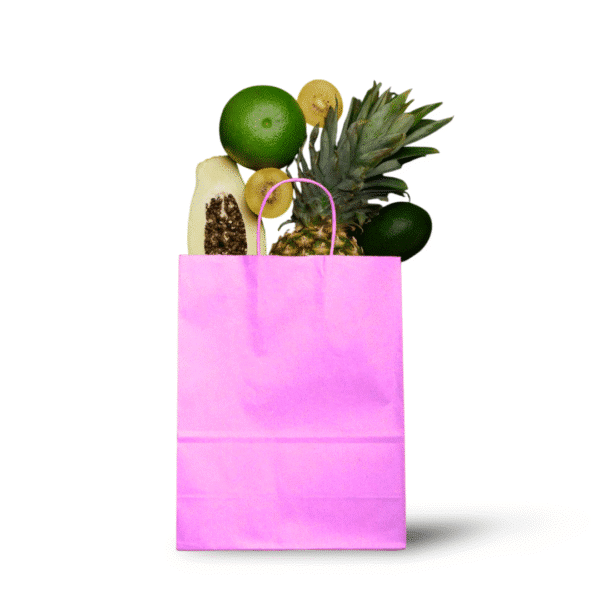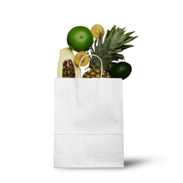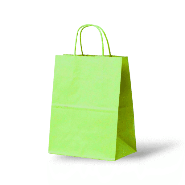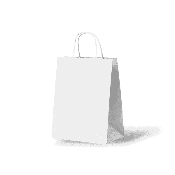 De gekleurde papieren draagtassen zijn gemaakt van wit gebleekt kraft papier.