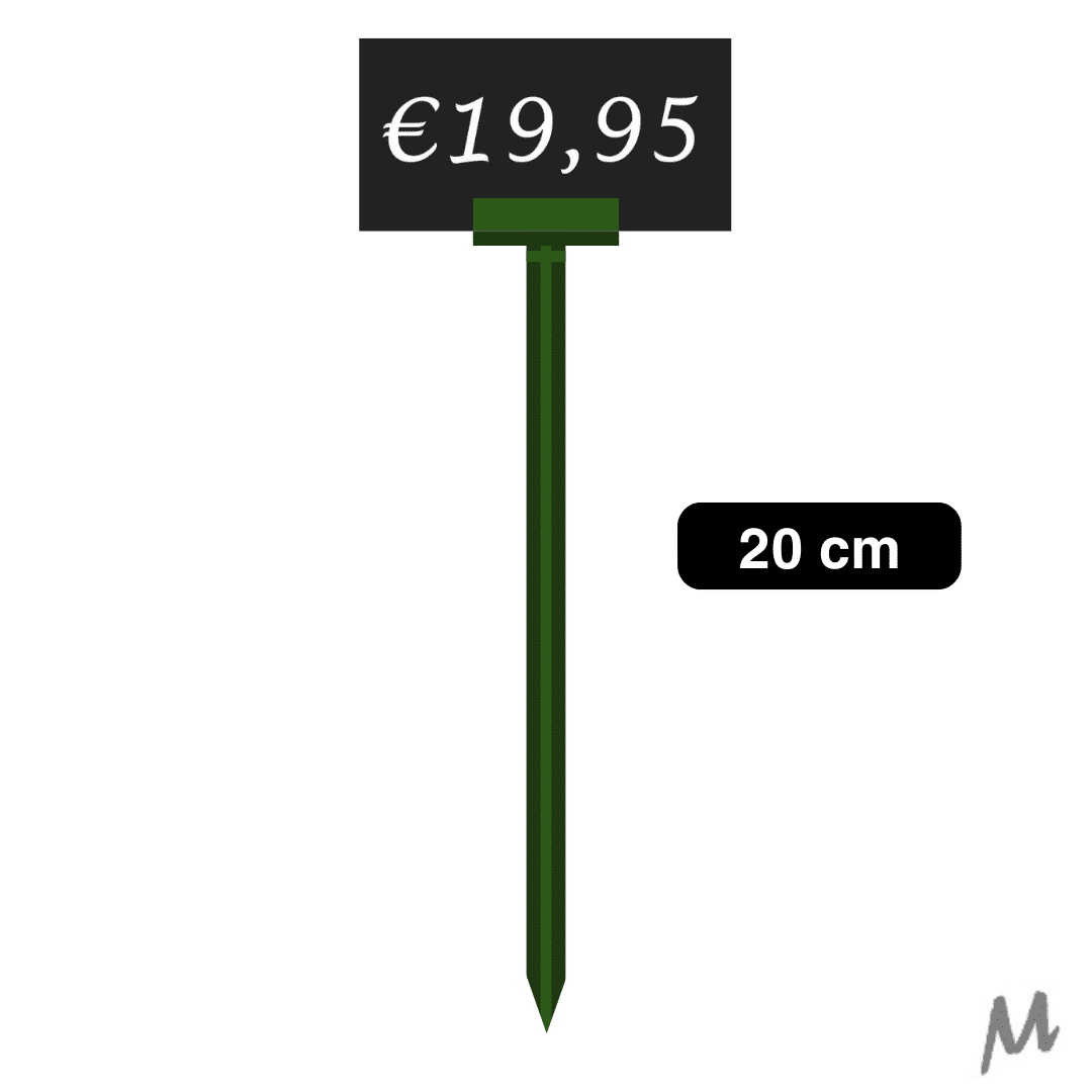 Deze set van 25 groene prijspennen is perfect voor het duidelijk en overzichtelijk markeren van prijzen, productinformatie of labels in winkels, marktkramen, tuincentra en magazijnen. Met een lengte van 20 cm zijn deze pennen handzaam, stevig en gemakkelijk te plaatsen in diverse oppervlakken, zoals karton, piepschuim of zachte materialen.
