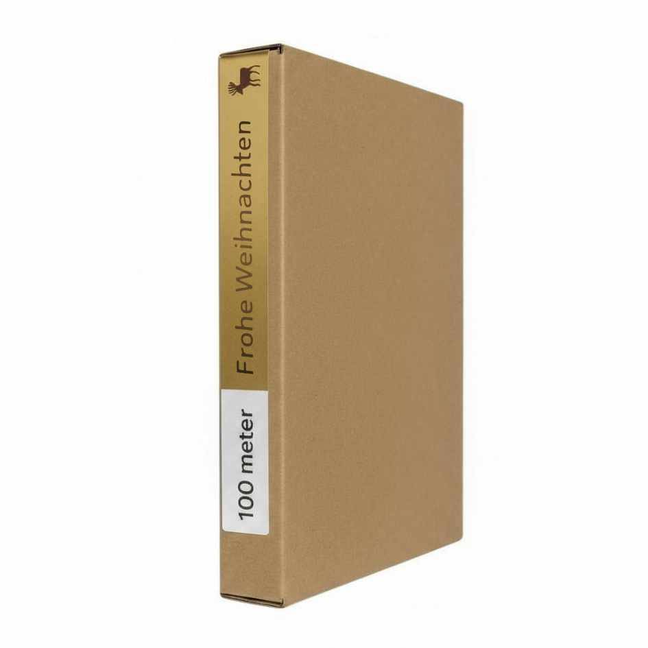 Creëer een feestelijke en luxe uitstraling met dit prachtige gouden satijnen lint. De tekst “Frohe Weihnachten” en het rendiermotief zijn bedrukt in bruin, wat zorgt voor een warme, stijlvolle glans en een chique afwerking. Dankzij de hoogwaardige satijnkwaliteit heeft het lint een zachte, soepele structuur en een luxueuze uitstraling – ideaal voor professioneel gebruik in de feestperiode.